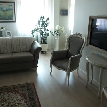 Pervelkame svetainės baldus, sofas, kėdes, kavinių, restoranų, viešbučių, ofisų baldus audiniu, natūralia arba dirbtine oda.